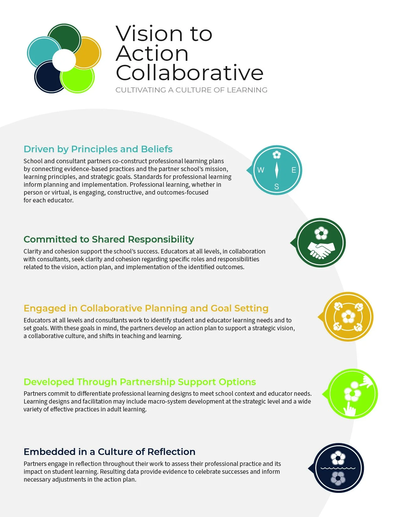 A north star, a shared commitment, collaboration, options, reflection. The Vision to Action project was an excellent opportunity to create icons which needed to represent complex abstract ideas in very simple digestible ways.